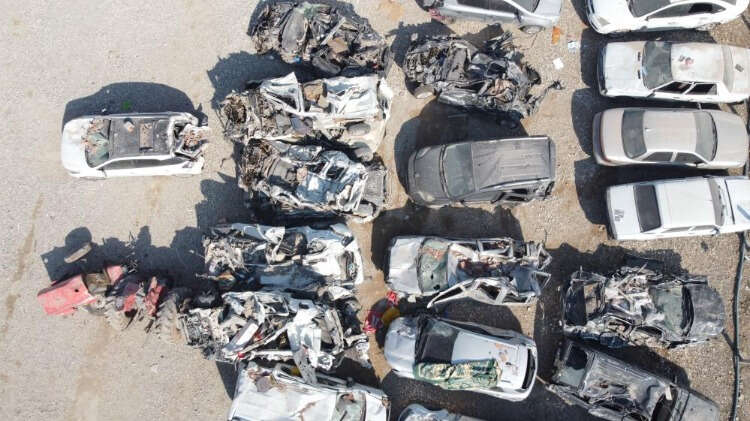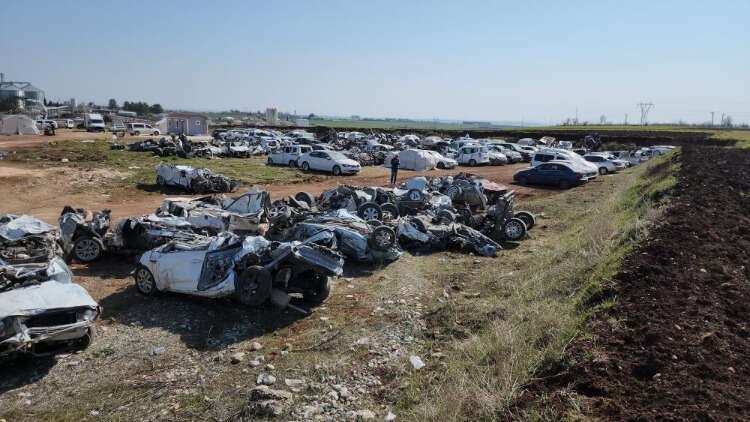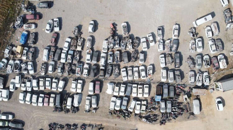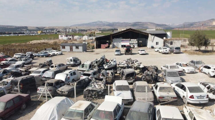 Depremin vurduğu illerden Adıyaman’da enkaz altında kalan ve hurdaya dönen yüzlerce aracın kaldırıldığı yediemin otoparkları havadan böyle görüntülendi.