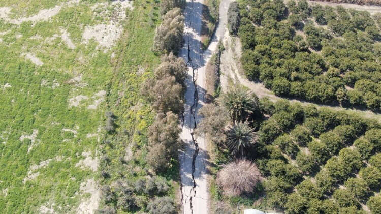 Hatay'ın Samandağ ilçesinde depremler sonrası yaklaşık 3 kilometrelik yolda derin yarıklar ve çökmeler oluştu. Ürküten manzara, böyle görüntülendi.