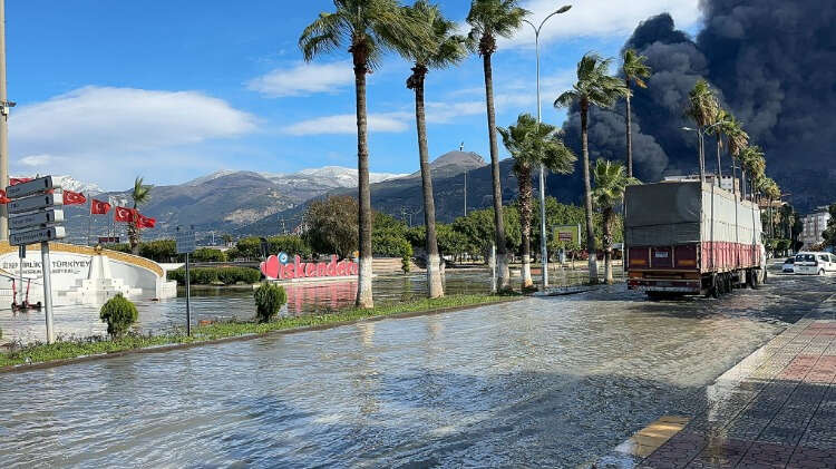 Depremin vurduğu yerlerden Hatay'ın İskenderun ilçesinde depremin ardından deniz seviyesi yükseldi. Sahilden iç kısma doğru su birikintileri oluştu.