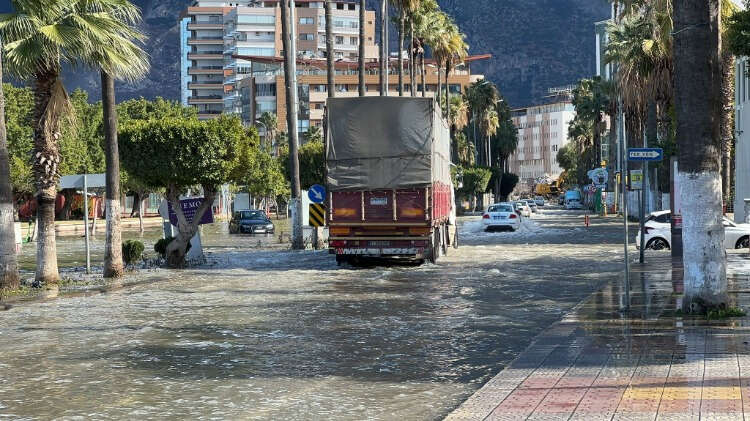 İskenderun'da deniz taştı: Sokaklar sular altında!