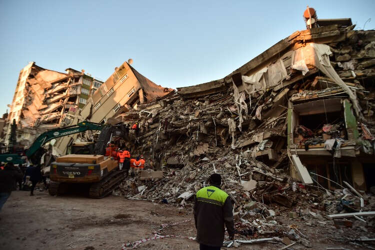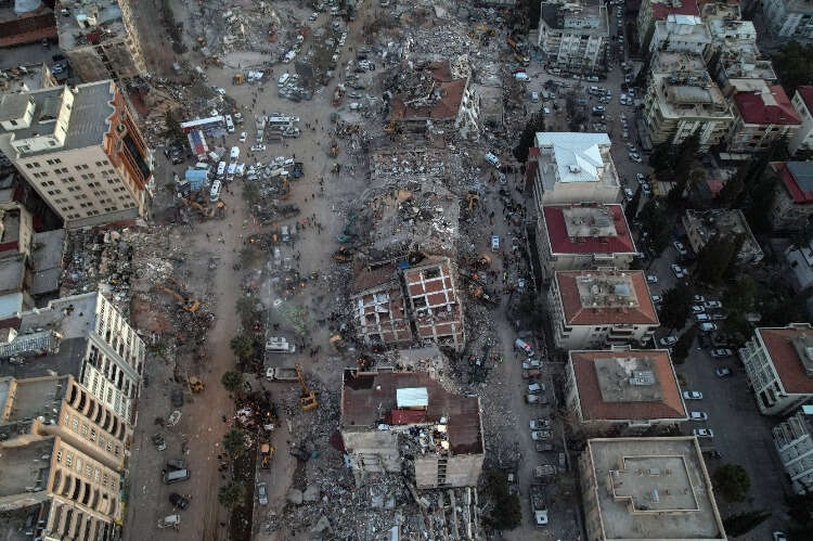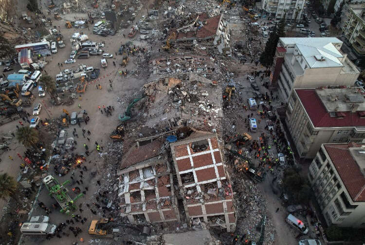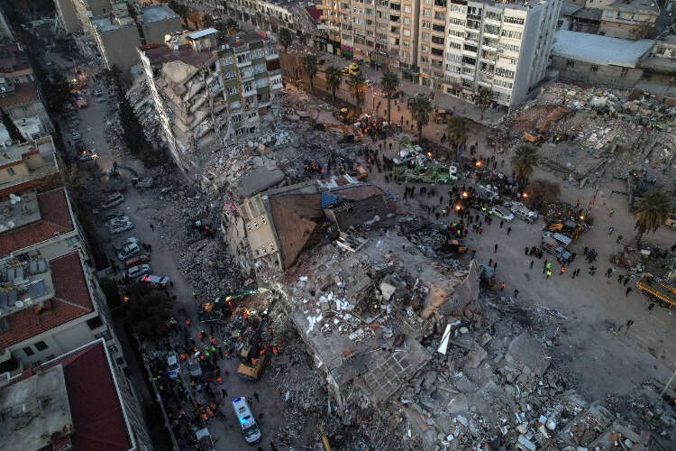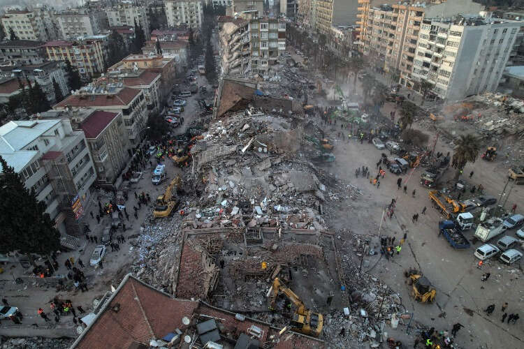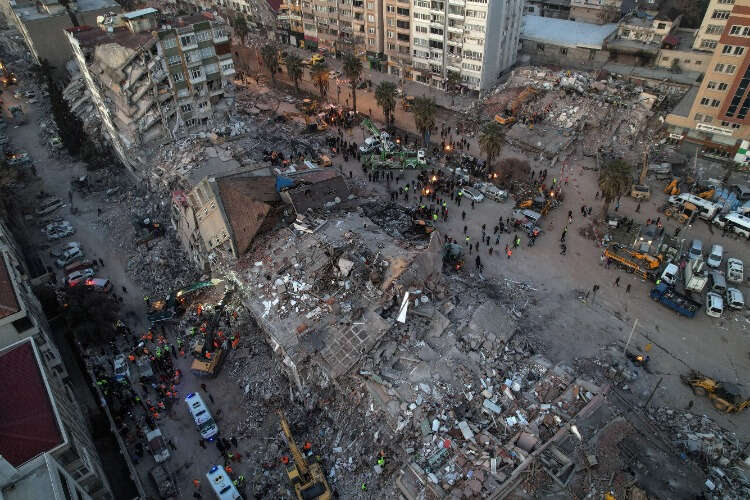 Depremin merkez üssü Kahramanmaraş’ta yıkılan binalarda ekiplerin arama kurtarma çalışmaları, havadan dron ile böyle görüntülendi.