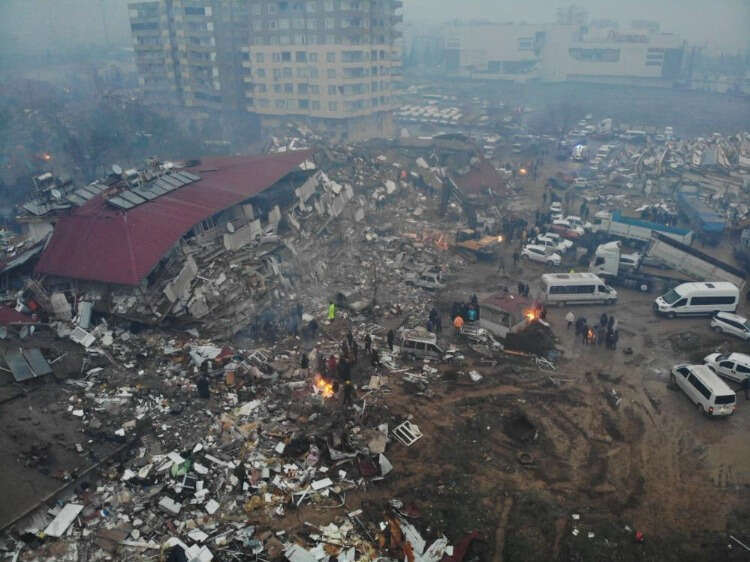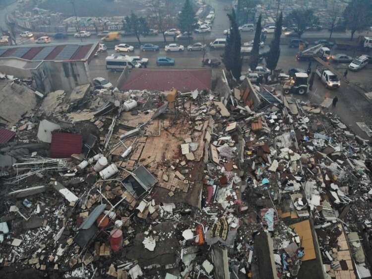 Bin 541 kişinin hayatını kaybettiği depremlerin kalbindeki Kahramanmaraş şehir merkezinde yıkılan binalar, havadan dron ile görüntülendi. Egemen Mahallesi'ndeki Küçük Sanayi Sitesi yakınlarında onlarca binanın enkazı havadan İHA ekibi tarafından dron ile görüntülendi. Yıkılan binalardan geriye gözyaşı ve hüzün kalırken, enkaz altındaki vatandaşları kurtarmak için çalışmalar sürüyor.