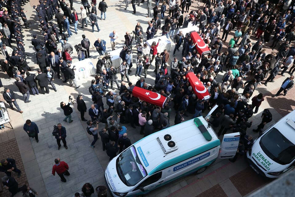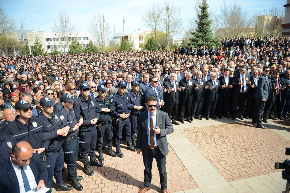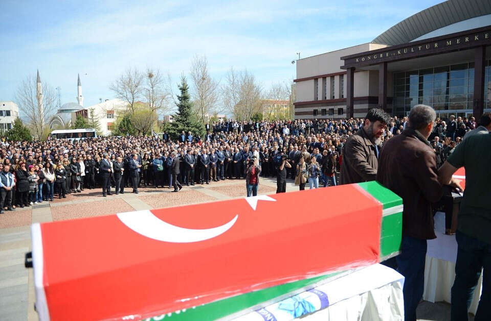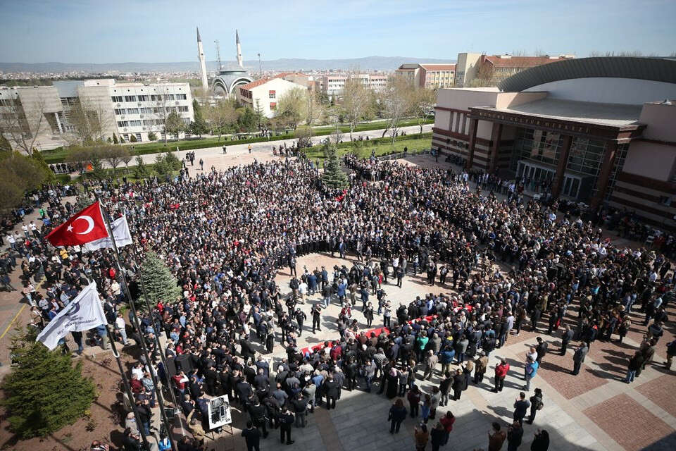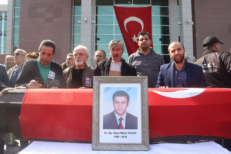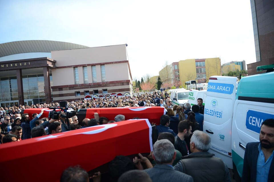 Eskişehir Osmangazi Üniversitesi Tıp Fakültesi Hastanesi'nden otopsi işlemleri tamamlanan cenazeler sabah saatlerinde rektörlük binası önüne getirildi.