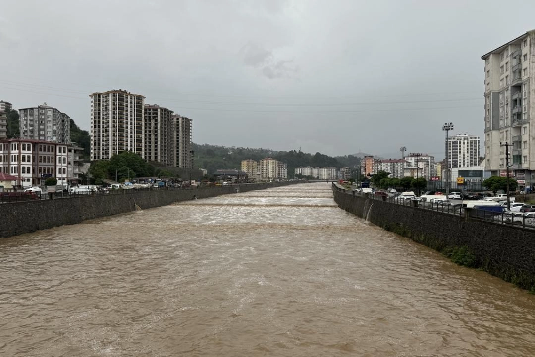 Rize'de sağanak sonrası cadde ve sokaklar göle döndü