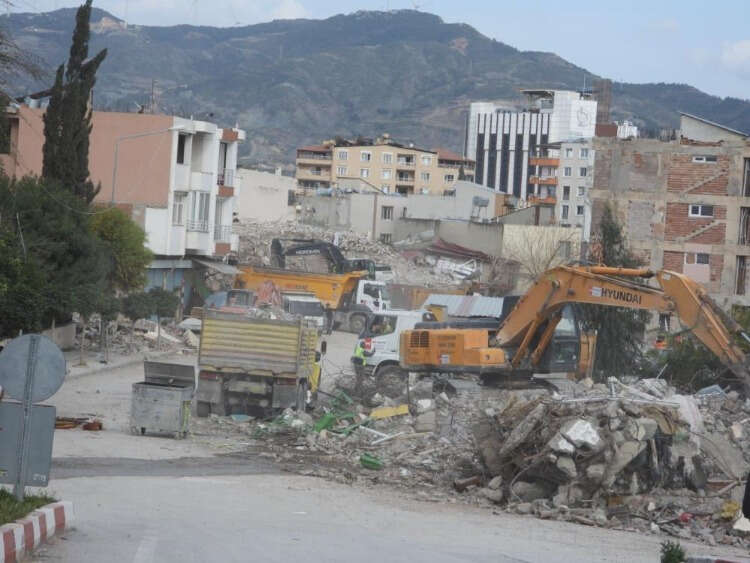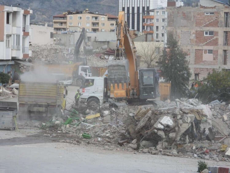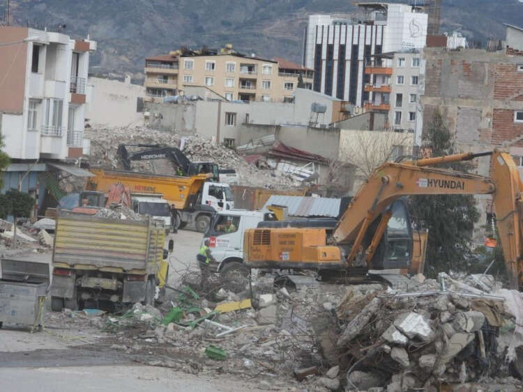 Samandağ'da enkaz kaldırma ve yıkım çalışmaları