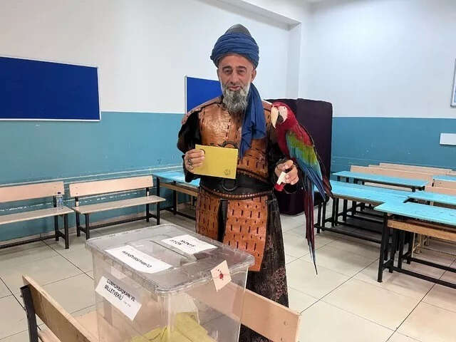 Esenyurt’ta yaşayan Nazım Cihan Osmanlı dönemi kıyafetini giyip papağanıyla birlikte oy kullanmaya geldi. Papağan, vatandaşların ve sandık görevlilerin ilgi odağı oldu. Paşa” isimli papağanıyla zarfı sandığa atarken, çevredeki vatandaşlar papağanı ilgiyle izledi.