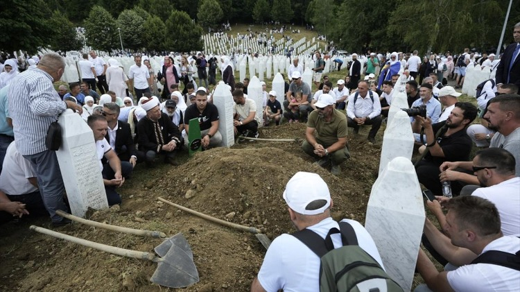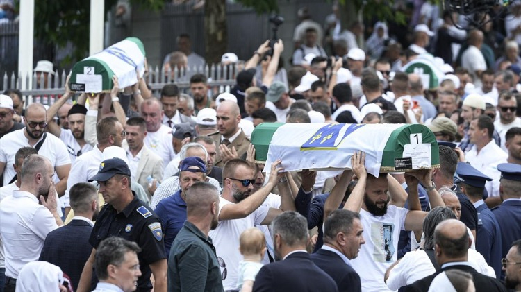 Bosna Hersek'in doğusundaki Srebrenitsa'da, Sırp birliklerince 1995'te yapılan soykırımda katledilen 7 kurbanın cenazesi, Potoçari Anıt Mezarlığı'nda toprağa verildi.