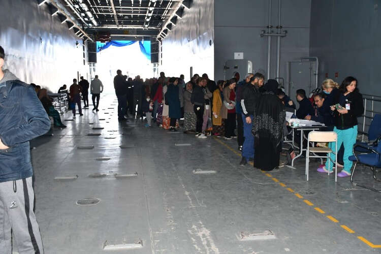 Yüzer hastaneye dönüştürülen, Türkiye Cumhuriyeti Gemisi (TCG) Bayraktar’a hastalar akın etti. Bayraktar’da yaralı ve hasta vatandaşların tedavisi sürüyor.