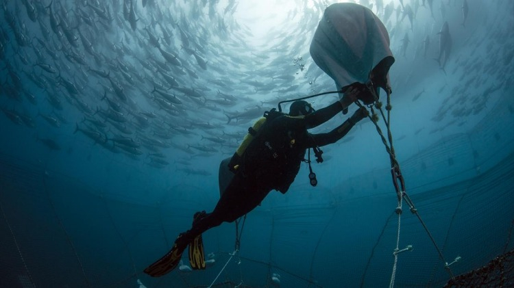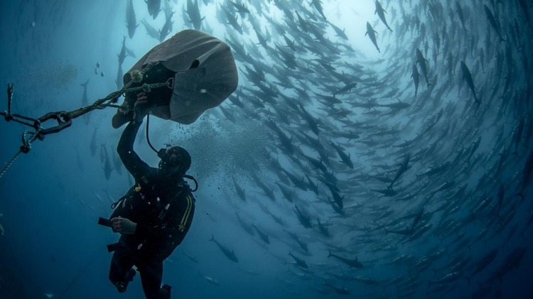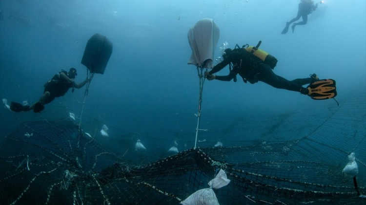 Balıkların sağlığı için kafesler sabit hızda çekilirken, teknelerin makineleri yol boyunca hiç durdurulmuyor.
