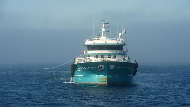 Akdeniz açıklarında orkinos avlama sürecini tamamlayan Türk balıkçılar, dönüş yolunda yer yer 2 metreyi bulan dalgalarla mücadele ederken, zorlu Çeşme Boğazı'ndan geçişte özel önlemler aldı.