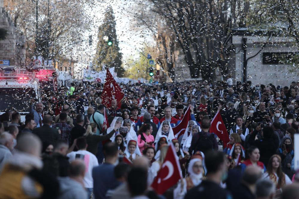 Osmangazi Belediyesi tarafından bu yıl 17’incisi gerçekleştirilen Osman Gazi’yi Anma ve Fetih Şenlikleri çerçevesinde Tophane Meydanı’nda görkemli bir açılış töreni düzenlendi. Pandemi dolayısıyla iki yıldır yapılamayan Fetih Yürüyüşü’ne katılan binlerce kişi ile birlikte Bursa’nın 1326 yılında fethedilişinin coşkusunu günümüze taşındı.