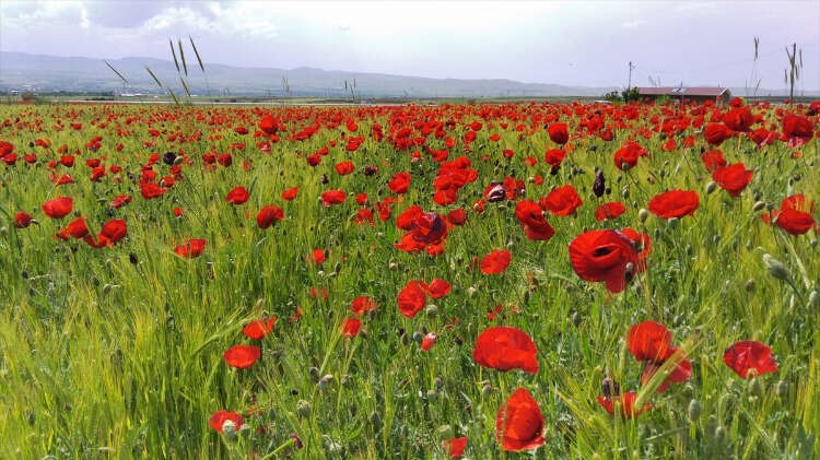 İl genelinde etkili olan yağışların ardından açan gelincikler, tarlaları kırmızıya boyadı.