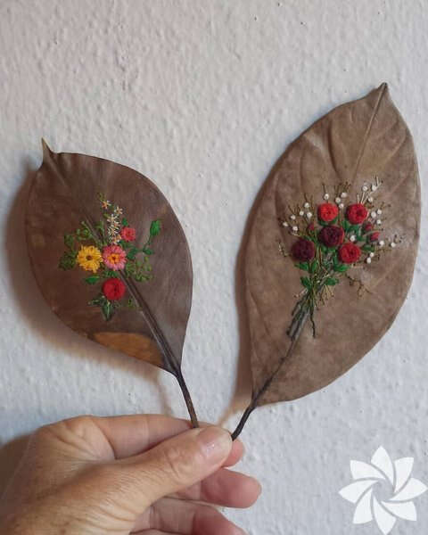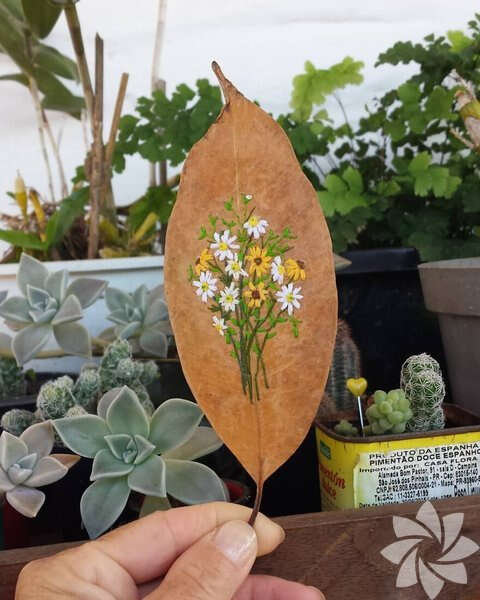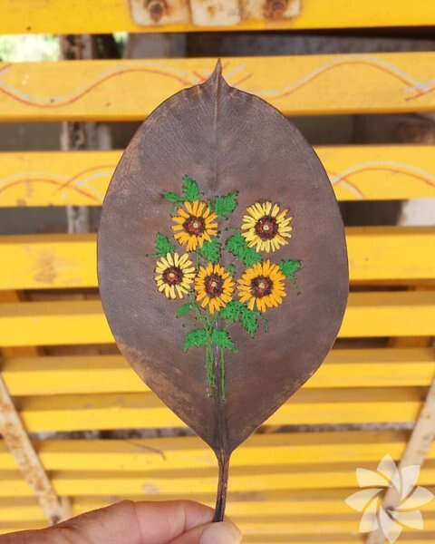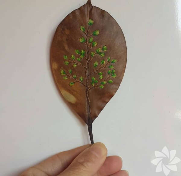 Sonbaharın güzelliklerinden olan kurumuş yapraklar tek başına bile göz alıcıyken, Solange Nunes bu yapraklara işlediği desenlerle sanat eserleri yaratıyor.