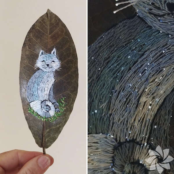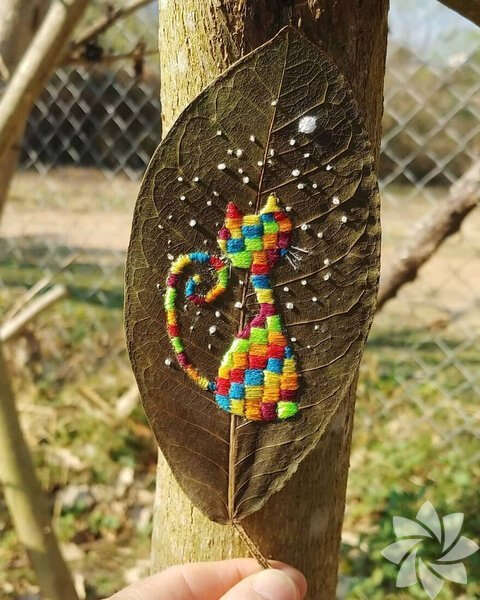 Brezilyalı bir sanatçı olan Solange Nunes, yapraklara harika desenler işliyor.