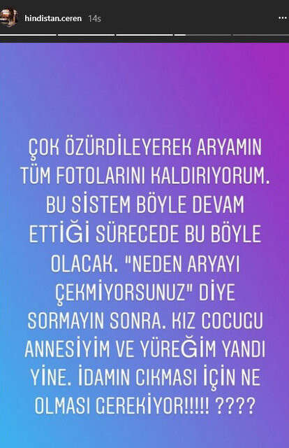 Ceren Hindistan kızının fotoğraflarını kaldırma kararı aldı