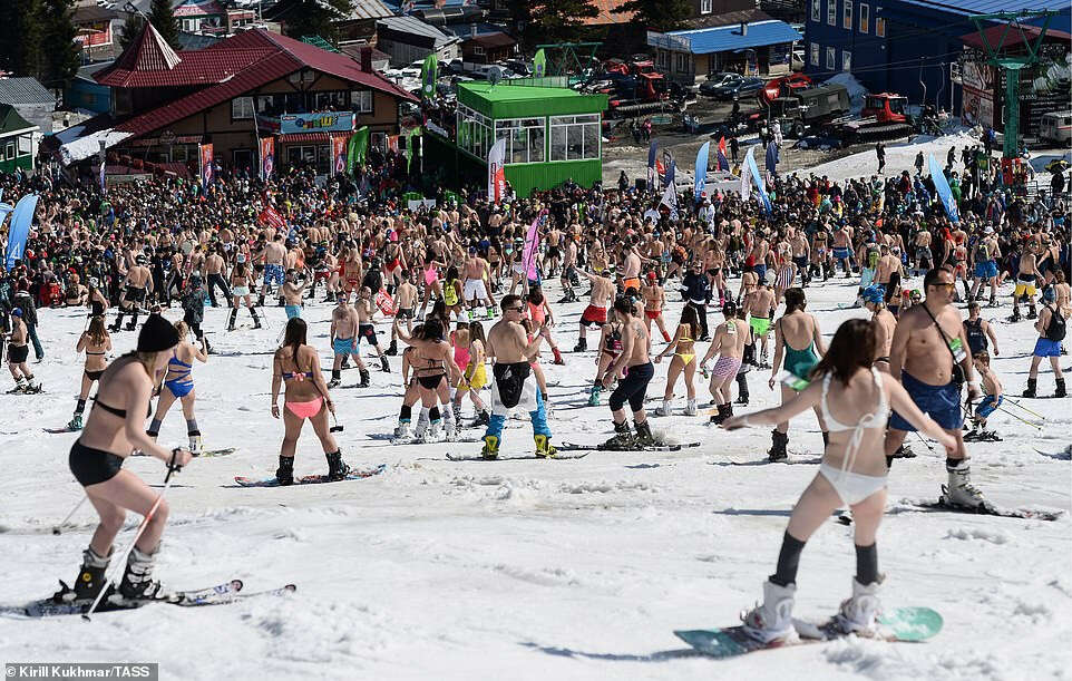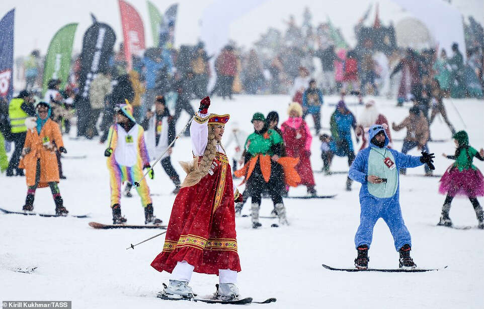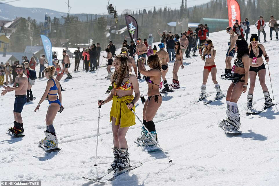 Rusya'nın Kermerovo kentinde düzenlenen Grelka festivali, yine renkli görüntülere sahne oldu. Kışın bitişini kutlamak için bir araya gelen festival müdavimleri, mayo ve bikinileriyle kayak yaptı.