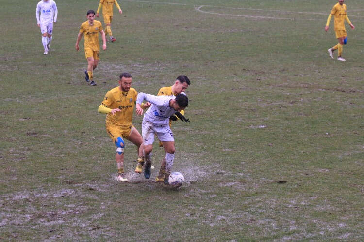 3. Lig’de oynanan Belediye Derincespor- Yomraspor maçında sağanak ve kar yağışı nedeniyle bataklığa dönüşen zemin, futbolu oynanamaz hale getirdi.