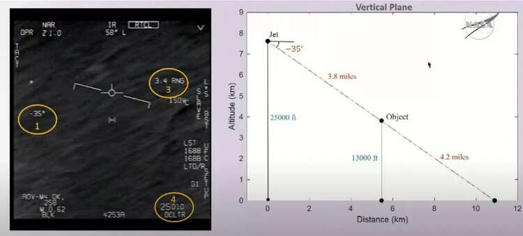Kirkpatrick'in sunduğu görsellerden biri 2022 yılında Orta Doğu'da tespit edilen uçan daire şeklindeki tanımlanamayan bir cisme aitti.