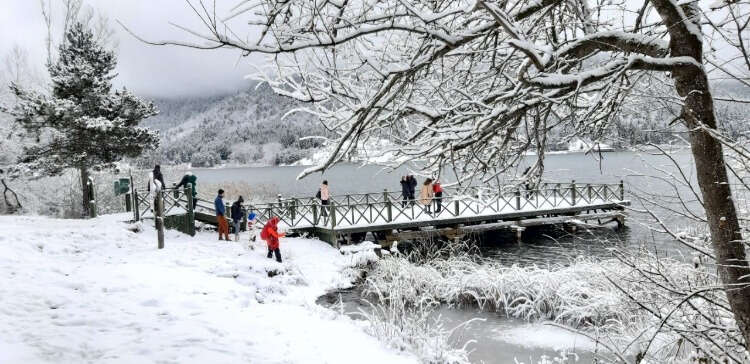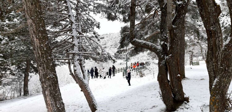 Bolu Abant Gölü Milli Parkı'nda etkili olan kar yağışı, bölgeyi beyaza bürüdü. Abant'ta akın eden doğaseverler ise karın tadını çıkardı.