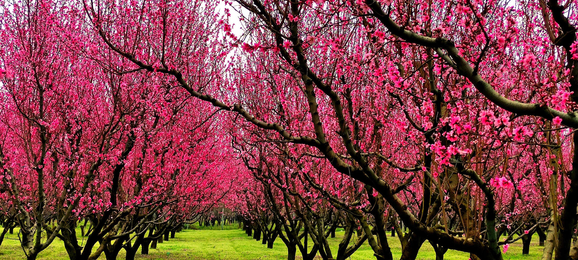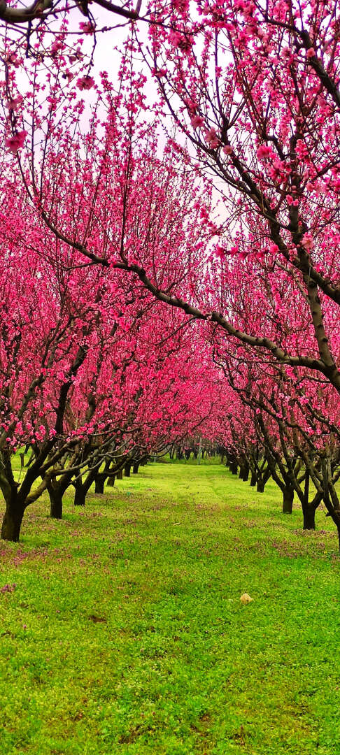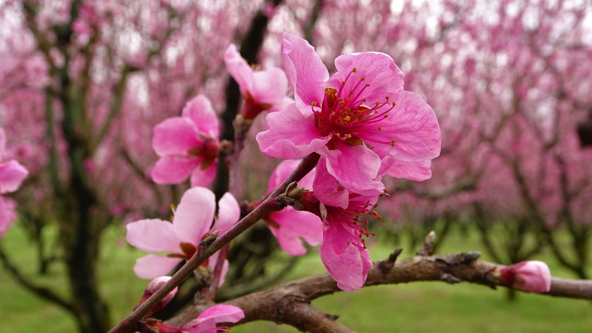Pembe renkte çiçek açan şeftali ağaçları Bursa ovasını renk cümbüşüne döndürdü.