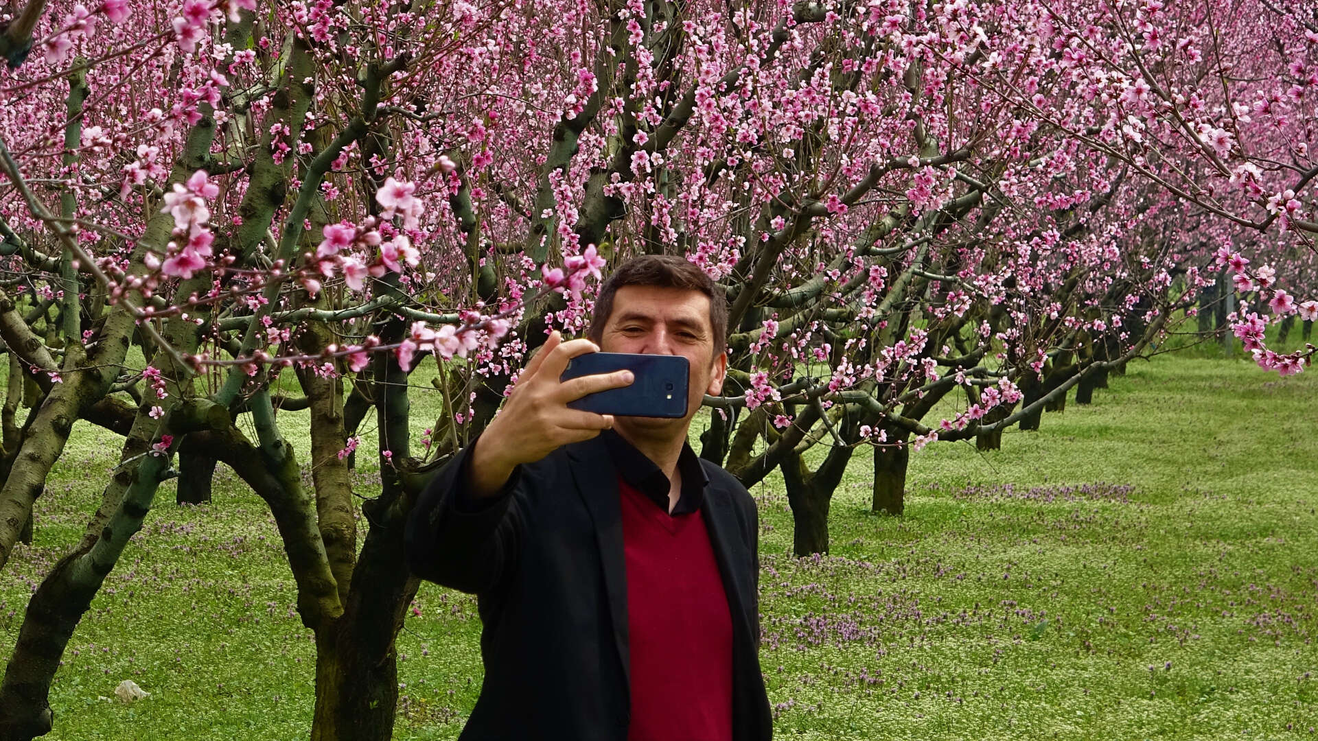 Bursa ovasında çiçek açan meyve bahçeleri görsel şölen oluşturdu. Vatandaşlar muhteşem manzara eşliğinde fotoğraf çekinmek için meyve bahçelerine akın etti.