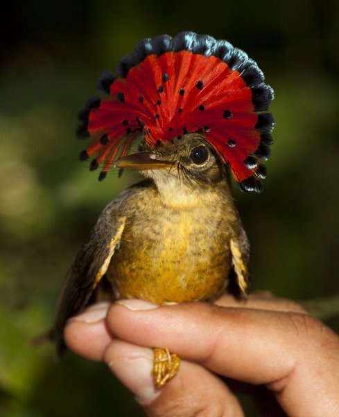 Royal flycatcher - Serçegillerin bir türü olan bu kuşlar "kraliyet sinekkapanları" adıylada biliniyor. Tüylerinin bazıları kırmızı ve siyah renkte oluyor.