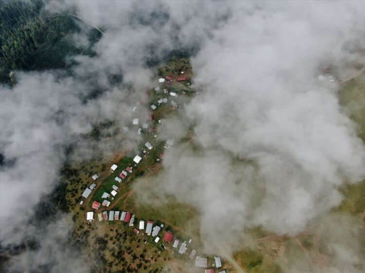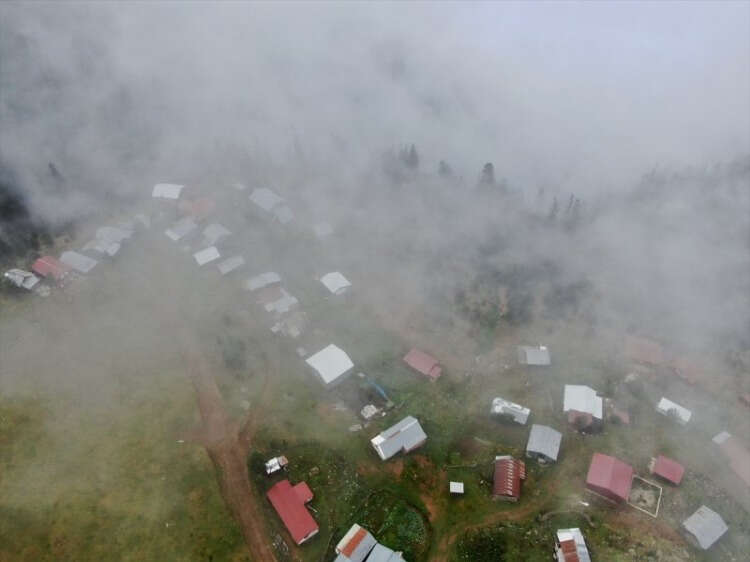 Batı Karadeniz yaylaları, sisle kaplandı. Sis altındaki yüksek kesimlerden objektiflere seyrine doyum olmayan manzaralar yansıdı.