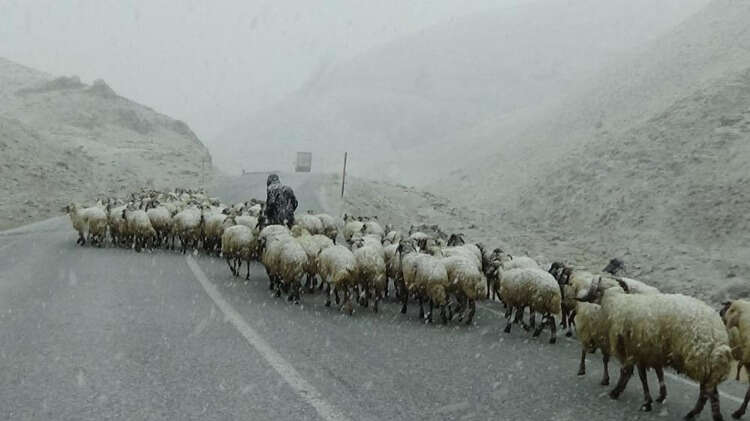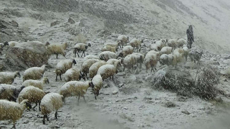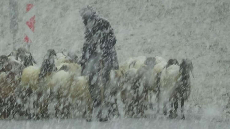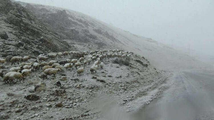 Van'ın Çatak ilçesinin yüksek kesimleri yağan karla beyaza bürünürken, bölgede hayvan otlatan çobanlar geri dönmek zorunda kaldı.