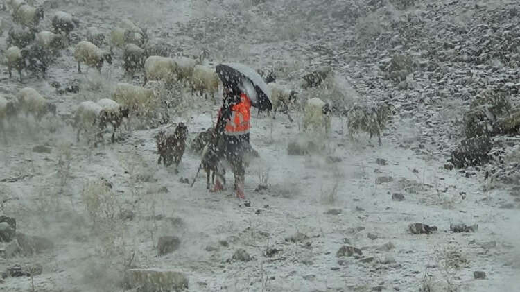 Van'ın yüksek kesimlerine kar yağdı, çobanlar zorlandı