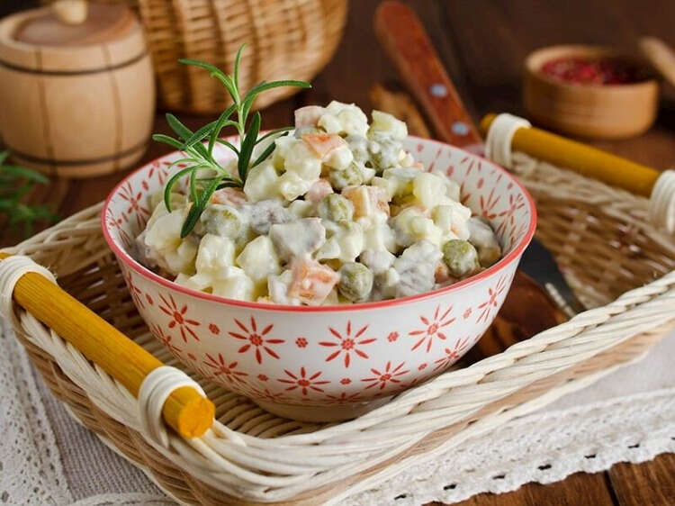 30 dakikada kolayca hazırlanan rus salatasını, aperatif olarak sunabilirsiniz. Patates, havuç, bezelye ve kornişon ile hazırlanan rus salatasını, mayonezle tatlandırmayı unutmayın.
