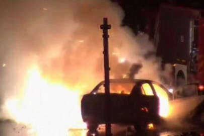 15 Temmuz Şehitler Köprüsü girişinde otomobil alev alev yandı
