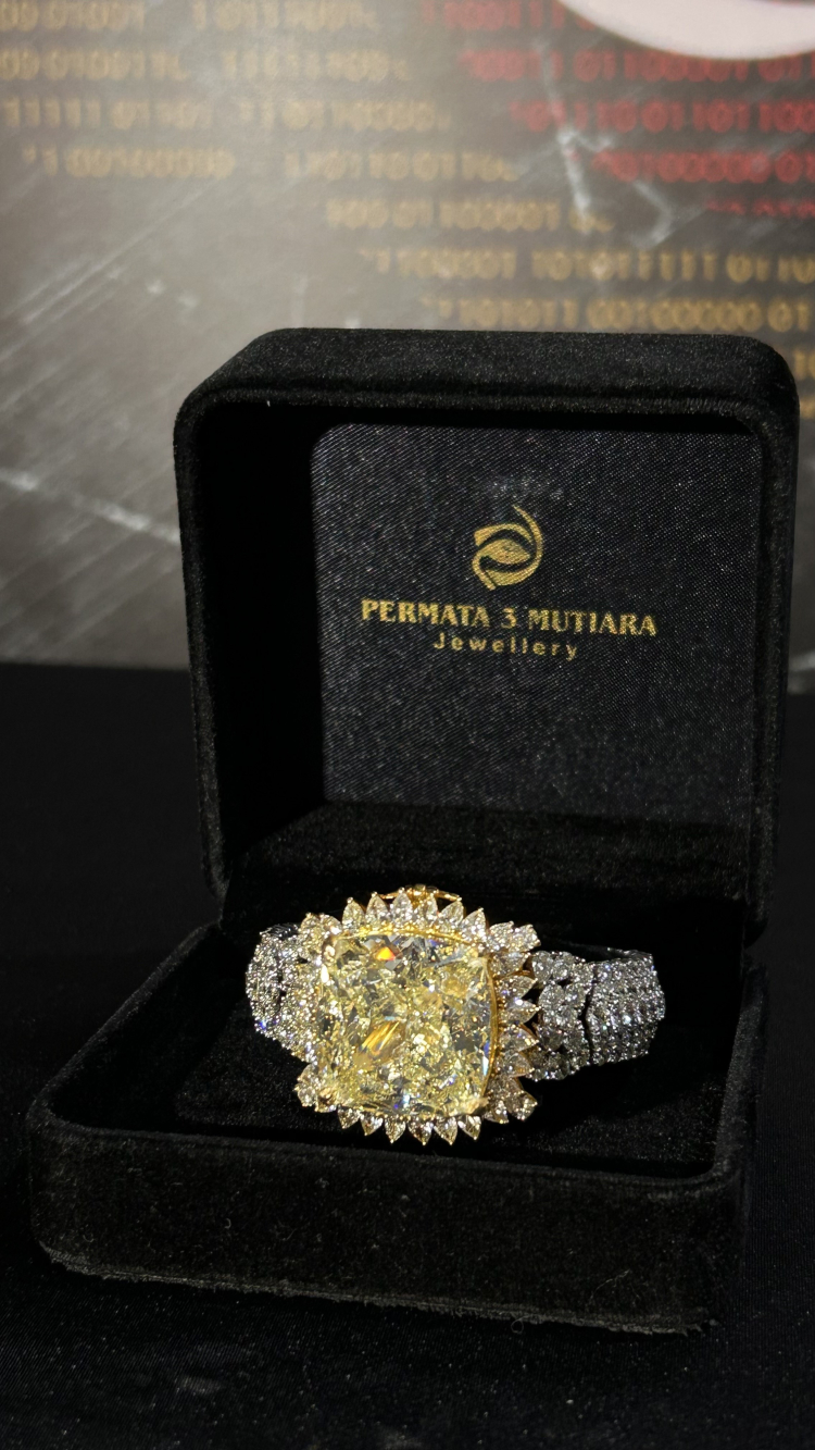 İstanbul Kapalıçarşı'da satılmaya çalışıldığı esnada yakalanan ve kaçak yollarla Endonezya'dan getirilen 80 karat, 16 gram ağırlığında 3 milyon dolar değerindeki sarı elmasla işlenmiş pırlanta, İstanbul Emniyet Müdürlüğü Vatan Yerleşkesinde sergilendi.