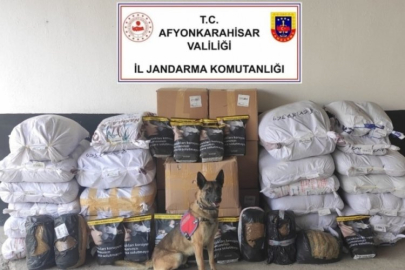 Afyonkarahisar'da jandarma tarafından durdurulan bir kamyonda 39 ayrı çuval içerisinde toplamda 848 kilogram kaçak tütün ele geçirdi.