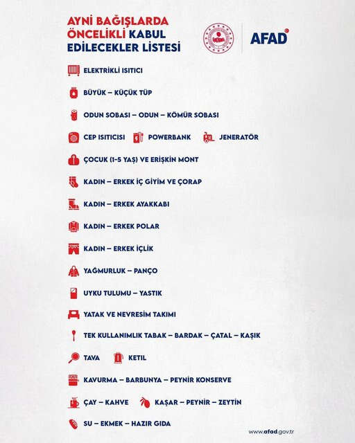 AFAD ÖNCELİKLİ YARDIM LİSTESİ