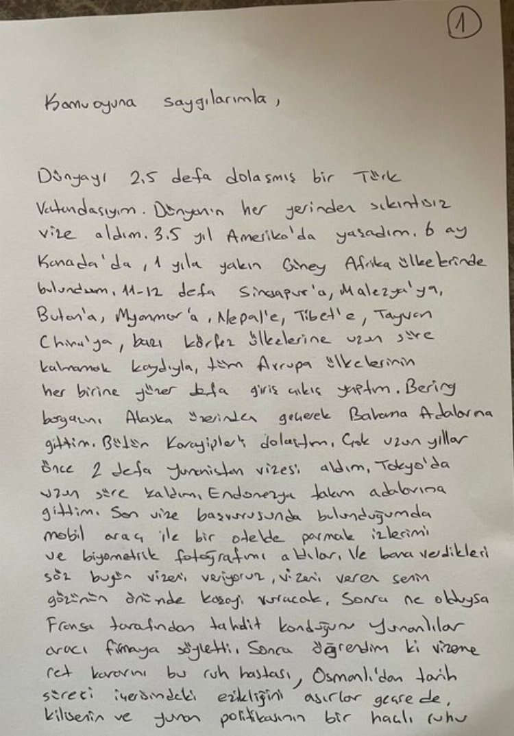 Sosyal medya hesabı üzerinden üç sayfalık açıklama yayınlayarak Yunanistan'a tepki gösteren Çakıcı, "Dünyayı 2,5 defa dolaşmış bir Türk vatandaşıyım" deyip, daha önce bulunduğu ülkeleri sayarak, vize başvurusunun reddedilme sürecini şöyle anlattı: "Son vize başvurusunda bulunduğumda mobil araç ile bir otelde parmak izlerimi ve biyometrik fotoğrafımı aldılar. Ve bana verdikleri söz, 'bugün vizeni veriyoruz.' Vizeni veren senin gözünün önünde kaşeyi vuracak. Sonra ne olduysa Fransa tarafından tahdit konduğunu Yunanlılar aracı firmaya söyletti. Sonra öğrendim ki vizeme ret kararını bu ruh hastası, Osmanlı'dan tarih süreci içerisindeki asırlar geçse de kilisenin ve Yunan politikasının bir haçlı ruhu kilisenin Müslüman Türklere karşı olarak genetik düşmanlığını silememiştirler..."