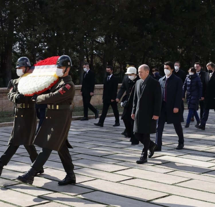 Almanya Federal Cumhuriyeti Şansölyesi Olaf Scholz, Cumhurbaşkanı Recep Tayyip Erdoğan'ın davetiyle Türkiye'ye geldi. Görüşme öncesinde Scholz, Anıtkabir'i ziyaret etti.