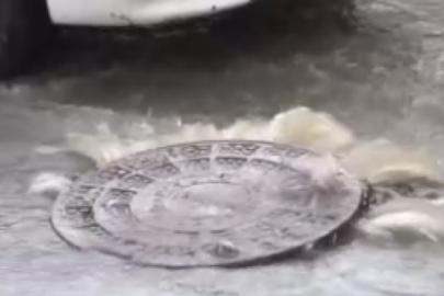 Etkili olan sağanak yağmur sonrası cadde ve sokaklar nehre döndü. Araç sürücüleri zor anlar yaşarken hayat durma noktasına geldi.