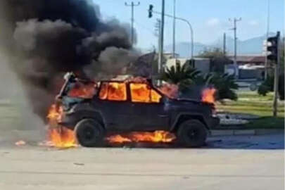 Seyir halindeyken yanmaya başlayan cip, meydana gelen patlama sonrası kullanılamaz hale geldi.