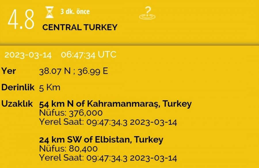 Kahramanmaraş'ta 4.8 büyüklüğünde bir deprem meydana geldi.
