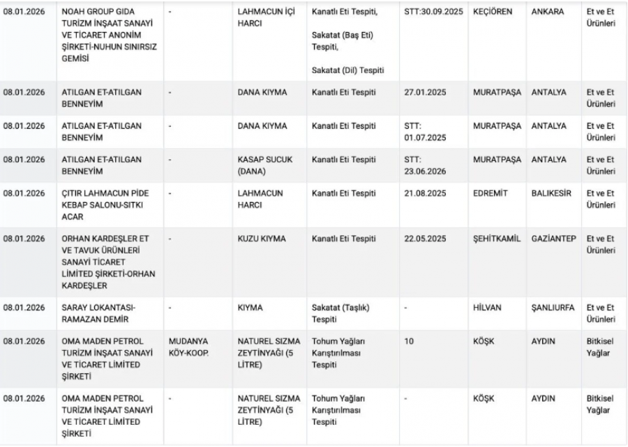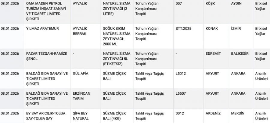 Tarım ve Orman Bakanlığı, gıda güvenliğine yönelik denetimleri kapsamında taklit ve tağşiş yapılan ürünler listesini güncelledi. Yapılan son açıklamayla birlikte, listeye 16 yeni firma eklendi.