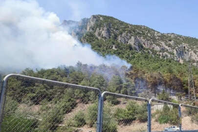 Havadan helikopterle de müdahale edilen yangının kısa sürede kontrol altına alınması için çalışma yürütülüyor.