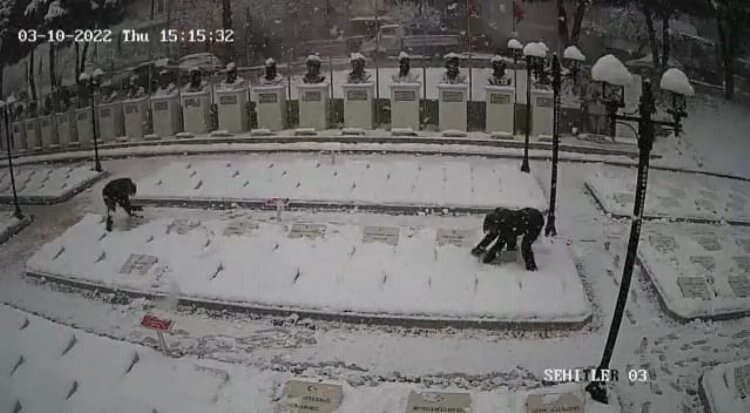 Belediyenin güvenlik kameralarına yansıyan o anları Çan Belediye Başkanı Bülent Öz, “İlçemizde kar yağışı devam ederken, Belediyemizin güvenlik kameralarına takılan bu sıcacık görüntüleri sizlerle paylaşmak istedim. Çan Belediyesi Çanlı Gaziler, Şehitler ve Türk Devletleri Anıtı'na gelen 2 evladımız, mezar taşları üzerindeki karları temizlemek için epey çaba saffetmişler ve sonrasında bizleri duygulandıran bu harika görüntülerle karşılaşmış olduk. Evlatlarımızı ve onları yetiştiren ailelerini kutluyor, en kısa zamanda bu evlatlarımızın kim olduklarını belirleyerek belediyemizde ağırlamak istiyoruz” ifadelerine yer vererek paylaştı.