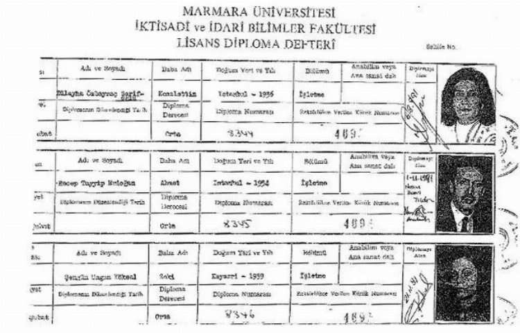 Erdoğan’ın Marmara Üniversitesi İktisadi ve İdari Bilimler Fakültesi’nden mezun olduğuna dair bir başka belge ise Marmara Üniversitesi mezunları ve tüm öğretim kadrosunun fotoğraflarıyla sıralandığı 1983 tarihli defterde yer alması.