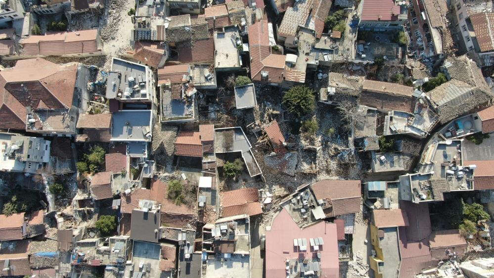 Hatay'ın sembollerinden biri olan 'eski Antakya evleri", yaşanan 2 büyük deprem sonrası bir çoğu yerle bir olurken enkazlar havadan görüntülendi.