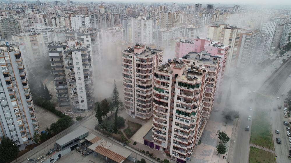 Kahramanmaraş merkezi depremde Adana'nın Çukurova ilçesine bağlı Yurt Mahallesi'nde bulunan 13 katlı Ayas sitesinin A bloğunun yarısı yıkıldı. Ekipler, 'Acil yıkılacak' listesinde bulunan binayı kontrollü bir şekilde yıkmaya başladı.