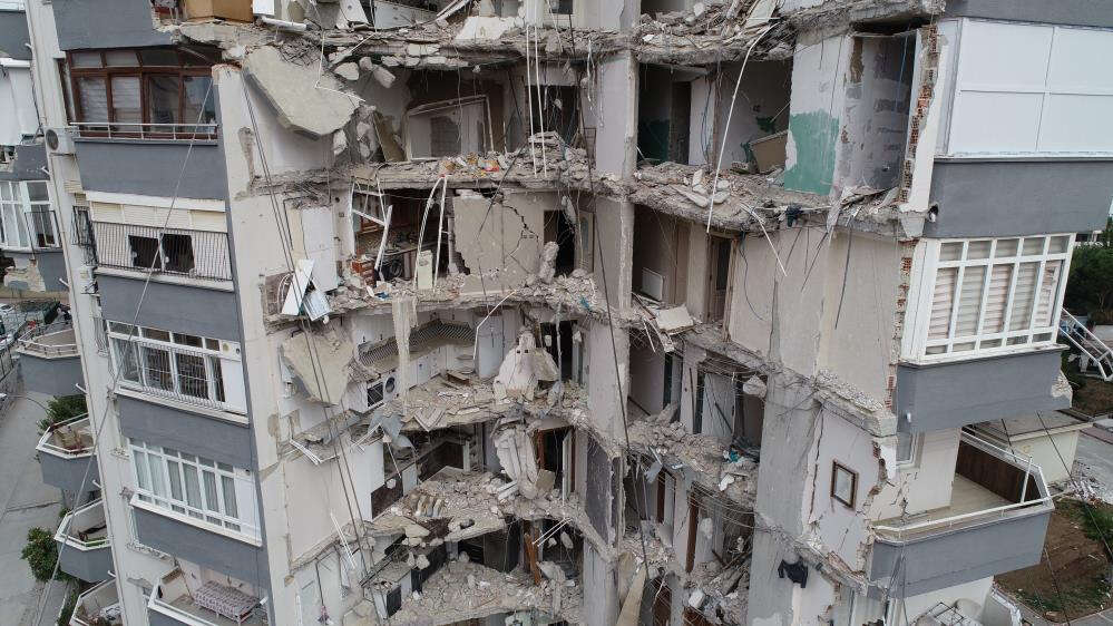 Depremde yarısı yıkılan apartmanın yıkımına başlandı