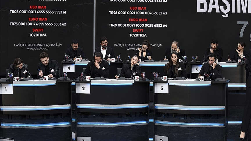 Yayına bağlanan Memur-Sen Başkanı Ali Yalçın ise 10 milyon TL bağışta bulunacaklarını açıkladı. Hak-İş Genel Başkanı Mahmut Arslan yayına bağlanarak 10 milyon TL bağışladı.