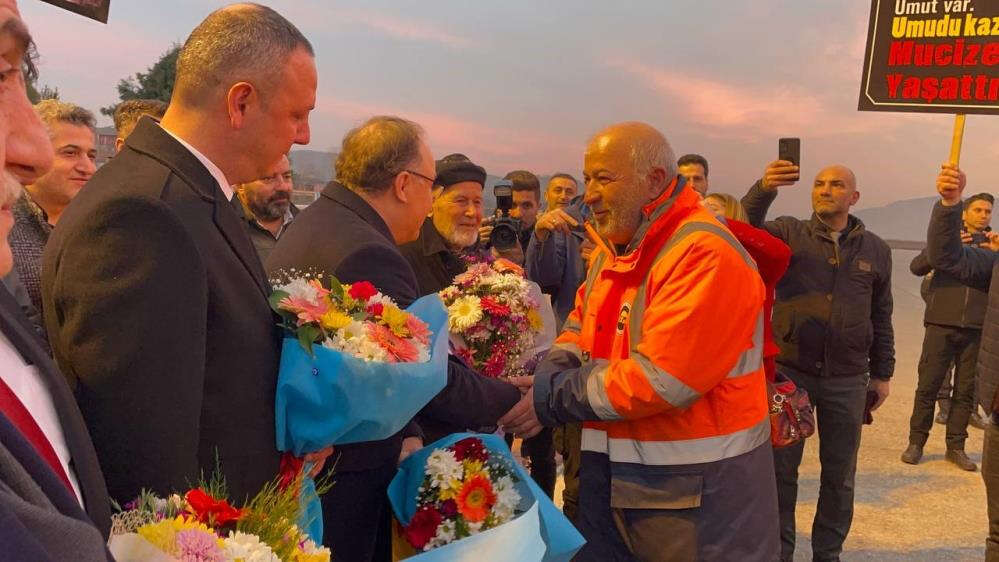 Hatay bölgesinde görevleri tamamlanan son madenci kafilesi, uçakla Zonguldak Havalimanı'na geldi. Madenciler burada Vali Mustafa Tutulmaz, Zonguldak Belediye Başkanı Ömer Selim Alan ve protokol üyeleri tarafından karşılandı. Madencilere çiçek takdim eden Vali Mustafa Tutulmaz, "Malumunuz olduğu üzere çok yoğun bir süreçten geçiyoruz. Ülkemiz asrın felaketiyle karşı karşıya kaldı. Burada da sizler büyük bir görevi başarıyla ifa ettiniz. Gerek ilimizin temsili açısından gerekse madencilerimize her yerde övgüyle bahsediliyor. Bunu özellikle bildirmek istiyorum. Allah hepinizden razı olsun. Burada büyük bir millet olduğumuzu da hep beraber gösterdik.