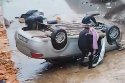 Şanlıurfa’da otomobilin dereye düşmesi sonucu baba ve oğlu yaralandı.