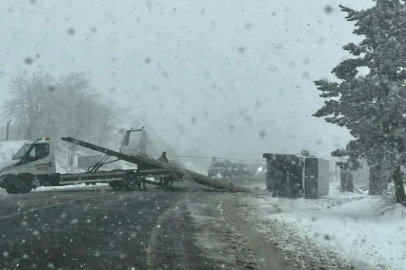 Kar yağışının etkili olduğu Domaniç-İnegöl yolu Kocayayla Orman Deposu yakınlarında bir ticari araç, sürücüsünün kontrolünü kaybetmesi sonucu devrildi. Kazanın ardından olay yerine yönlendirilen ekipler, bölgedeki trafiğin güvenliğini sağladı.